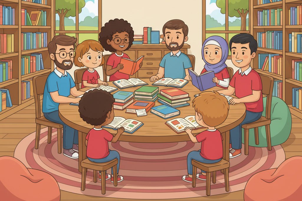 The coolest thing is that our parents come too! They sit in the back of the room with all their grown-up books. But then, they get to talk about their books, and sometimes my dad tells a funny story about a weird sci-fi book. It’s like having a double club meeting!
